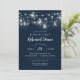 Erschwingliche, maßgeschneiderte Dinner-Einladungen für Hochzeitsfeiern mit einer leicht zu bedienenden Vorlage für die Anpassung. Dieses rustikale schicke Design besticht durch leuchtende Saitenlichter und Glaskeramikgläser auf dunkelmarineblau blauem Hintergrund. Personalisieren Sie die Einladung mit Ihrer Probe Abendessen Party Details oder anpassen Sie den Text für jede Veranstaltung zu verwenden. Verwenden Sie die Designwerkzeuge, um eine beliebige Hintergrundfarbe auszuwählen, Fotos hinzuzufügen und die Schriftart und Farben des Textes anzupassen, um ein einzigartiges Design für Ihr Party der Hochzeit Probe zu machen.