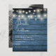 Diese rustikale, preiswerte Hochzeitseinladung kann mit Ihrem Hochzeitsdetails-Set in eleganter Typografie auf blauem Holzpaneelenhintergrund personalisiert werden, ergänzt durch hübsche Streichellichter. Auf der Rückseite finden Sie Ihr eigenes Foto. Entwickelt von Thisisnotme©