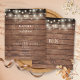 Mit hübschen Saitenlichtern sind Ihre Namen in einem Laubgarten über Ihrem besonderen Hochzeitstermin und Ihren Räumlichkeiten gerahmt, Set in schicker, eleganter klassischer Typografie auf rustikalem Holzhintergrund auf dieser stilvollen preiswerten Hochzeitseinladung. Auf der Rückseite sind Ihre Initialen oder Monogramm gerahmt durch eine passende Blumengarne. Entwickelt von Thisisnotme©