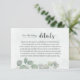 Rustikale Salbeigrüne Eukalyptus-Hochzeitsdetails Begleitkarte