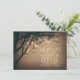 Rustikale Save the Date Einladung mit Baumzweigen und hängenden Maurerkirschen mit glühenden Glühwürmchen.