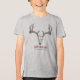 Der T - Shirt dieses Bauernhofs zeigt eine handgezeichnet Abbildung eines Hirschkopf-/Rentierschädels und von rote Rosen mit schwarzer Tinte geschmückter Geweihe. Alle Texte können bearbeitet werden. Personalisieren Sie Ihren Urlaub mit Ihrem eigenen Namen.