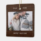 Diese schlichten und minimalistischen Weihnachtsschmuckstücke zeigen Ihr liebstes Hochzeitsgeschenk auf der Vorderseite mit Ihren Initialen, dem Jahr, und die Worte "fröhlich und verheiratet" in der weißen Schreibmaschine sehen Text auf einem rustikalen, braunen Holz-Hintergrund. Auf der Rückseite befindet sich ein anderes Foto, das mit einem Overlay beleuchtet wird, sodass Sie direkt darüber noch einen oder mehrere weitere Namen hinzufügen können. Ein stilvoller Sake für Ihre erste Weihnachtszeit als Ehemann und Ehefrau.