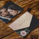 Genießen Sie die Romantik mit unserer eleganten, schwarz-rosa Blumen-Hochzeitseinladung. Vor einem Hintergrund aus schwarzem und schimmerndem Rose-Gold verbinden sich zarte Pfingster mit schwindelerregenden rustikalen Saitenlichtern und schaffen so ein Ambiente der Zauberei. Das Ganze mit einem individuellen Bild des Ehepaares auf der Rückseite, mit Hochzeitsdetails und UAWG, ist eine raffinierte Verbindung von moderner Eleganz und zeitloser Romantik.