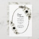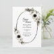 Eine elegante rustikale Hochzeit mit schwarz-weißem Blumenmuster rette der aktuellen Karte mit Sonnenblumen und Gänseblumen, die auf einem ovalen Rahmen angeordnet sind.
