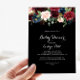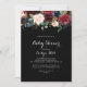 Diese rustikale schwarze botanische Babydusche lädt zu einer klassischen Babydusche ein. Das Design besteht aus bordeauxroten, marinierten, blauen und rot strahlenden Blume mit anmutigen, handbemalten, schwarzen Hintergrund, die die natürliche Schönheit inspiriere.