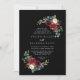 Diese rustikale schwarze botanische Diamantenhochzeit lädt zu einer klassischen Hochzeit ein. Das Design besteht aus bordeauxroten, marinierten, blauen und rot strahlenden Blume mit anmutigen, handbemalten, schwarzen Hintergrund, die die natürliche Schönheit inspiriere.