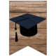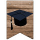 Die rustikale Holzschwerkraft Party Jagdfahnen mit rustikalem Holzhintergrund, Graduierungsmütze und einer modernen, weißen Textvorlage.Ein perfektes Design, um den Erfolg des Abschlusses zu feiern.Bitte klicken Sie auf die Schaltfläche Personalisieren, um es in Ihrem eigenen Text zu personalisieren.