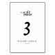 Diese rustikale Script-Tischnummer ist perfekt für eine Landhochzeit. Das schlichte und moderne Schwarz-Weiß-Design besticht durch eine einzigartige handgeschriebene Kalligraphie mit zeitgenössischem minimalistischem Boho-Stil. Anpassbar in jeder Farbe. Behalt das Design minimal und simpel, wie es ist, oder personalisiere es durch Hinzufügen von eigenen Grafiken und Kunstwerken. Die Karte druckt auf der Vorder- und Rückseite (beidseitig). Die Artikel werden genau so gedruckt, wie sie auf dem Bildschirm erscheinen, wenn Sie sie zum Warenkorb hinzufügen, sodass Sie jede Tischnummer, die Sie benötigen, individuell anpassen und hinzufügen können.