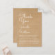 Rustikales Drehbuch Hochzeit danken Ihnen Empfang-Karte mit schicken modernen Typografie, die mit Ihrem besonderen Gast personalisiert werden können danken Ihnen Nachricht auf einem rustikalen Kraftsackhintergrund. Entwickelt von Thisisnotme©