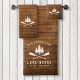 Ein wunderschönes, rustikales Set für Badehandtücher mit Familienname und "Lake House" oder anderen Wunschtexten, zusammen mit Datum und Lage. Dieses individuelle Design besticht durch eine weiße Silhouette von Kreuzbootstühlen und Kiefernbäumen auf Holzplanken. Um mehr Designs wie dieses zu sehen, besuchen Sie bitte meinen Shop hier unter "Zazzle.com/Rustic_Charm". Danke.