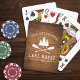 Ein schönes, rustikales Themendeck mit Spielkarten, mit Ihrem Familiennamen und "Lake House" oder einem anderen gewünschten Text, zusammen mit seinem etablierten Datum und seiner Lage. Dieses individuelle Design besticht durch eine weiße Silhouette von Kreuzbootstühlen und Kiefernbäumen auf Holzplanken. Um mehr Designs wie dieses zu sehen, besuchen Sie bitte meinen Shop hier unter "Zazzle.com/Rustic_Charm". Danke.