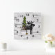 Rustikale Silhouette Elche und Bäume auf Birch Quadratische Wanduhr