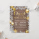 Rustikale Gold Silvester Party Einladung. Happy Silvester. Goldschneeflocke. Weiße Feder. Weihnachtsurlaub Brautparty Einladung. Gold und rustikales Holz. Land Vintag Retro Barn.