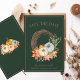 Rustikale Smaragdgrüne Herbst-Ernte Pumpkins Hochzeit Retten Sie die Datumskarten - Embrace die Wärme der Jahreszeit. Feiern Sie Ihre Liebe inmitten des Herbstes mit unseren zauberhaften Hochzeitskarten, die mit rustikalen Kürbissen und warmen Orange- und Smaragdgrün gerettet sind. Wenn Sie "in die Liebe fallen" und auf diese neue Reise gehen, erfassen diese "rettend" Karten den Zauber der Saison. Das inspirierte Design des Bauernhauses strahlt das gemütliche Ambiente des Herbstes aus und bringt den Geist des Herbstes zum Leben. Erleben Sie den Zauber Ihres besonderen Tages mit Familie und Freunden, indem Sie diese exquisite Hochzeit im Herbst rett-the-date Karten verwenden, in denen die herzhaften Farben der Saison nahtlos mit dem Versprechen einer schönen Zukunft harmonieren.