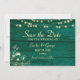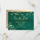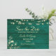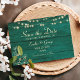 Erzählen Sie Ihren großen Tag mit unserer eleganten, boho Save the Date Einladung. Mit rustikalem Holz und smaragdgrünen Akzenten präsentiert es goldvergoldete Blumenspitzen und Lichter an der Saite für eine bezaubernde Touch.
