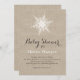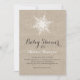 Extravagantes Bandskript und eine extravagante Schneeflocke unterstreichen diese rustikale, Baby Dusche Einladung auf illustriertem Boden. Kontaktieren Sie uns unter prettyfancyinvites@gmail.com, wenn Sie weitere Koordinierungsaufgaben benötigen oder bei der Personalisierung dieser Einladung helfen möchten. Scrollen Sie nach unten, um die koordinierende Briefmarke zu sehen.