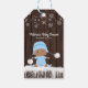 Junge Babyduschen bevorzugen Anhänger mit bezauberndem ethnischen Baby-Junge, der eine blaue Schneedecke und einen Hut auf einem niedlichen rustikalen Holz- und Schneeflocken-Hintergrund trägt. Sie können diese bezaubernden Baby Boy Geschenketiketten ganz einfach an Ihre Veranstaltung anpassen, indem Sie einfach Ihre Details vorn und hinten hinzufügen.