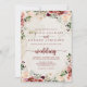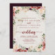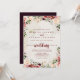 Diese rustikale Sommerblumen vor und zurück Hochzeit Einladung ist perfekt für eine einfache Hochzeit. Die Blume sind bordeauxrot, rosa und rot, das Wasser ist mit grünen Blätter in einem bräunlichen Hintergrund. Rett Papier, indem man mehr Details auf der Rückseite der Einladung anstatt auf einer separaten Gehäusekarte angibt.