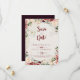 Diese rustikale Sommer Blumen kalligraphische Hochzeit speichern das Datum ist perfekt für eine einfache Hochzeit. Die Blume sind bordeauxrot, rosa und rot, das Wasser ist mit grünen Blätter in einem bräunlichen Hintergrund.