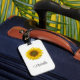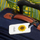 Gepäckanhänger im rustikalen Botanischen Garten mit gelbem Sonnenblumenbild. Schwarze Schriftzeichen können mit Ihrem eigenen Text angepasst werden. Ein niedlicher Gegenstand für Ihr Gepäck oder Ihre Aktentasche.