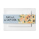 Elemente: Schönes Portrait von Sonnenblumen in einer rustikalen Vase. Ihre Namen und Details erscheinen in einem lustigen, leicht bedrückten Schriftart. Farben: Gelb, schwarz, braun, orange, grün, blau, violett. Themen: rustikal, Land, Scheune, romantisch, Garten, Hütte, hell, sonnig. Sammlung: Rustikale Sonnenblumen Bouquet Watercolor Wedding Collection. Art des Produkts: Bauchband