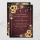 Rustikale Sonnenblume Burgundy Wood Floral Wedding Einladung