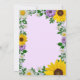 Rustikale Ostereinladung mit blühenden Sonnenblumen, traditionellen Weißtönen und farbenfrohen violetten Blumen vor einem lila Hintergrund mit Babyatmen und botanischen Akzenten im Grünen
