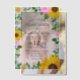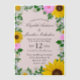 Rustikale Hochzeitseinladung mit blühenden Sonnenblumen, traditionellen Weißtönen und rosa Blume vor hellrosa Hintergrund mit Babyatemusik und botanischen Akzenten im Grünen