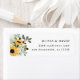 Diese wunderschönen und rustikalen Rücksendeadressen-Aufkleber sind mit einem böhmischen Bouquet aus goldgelben Sonnenblumen und grünen botanischen Blätter auf weißem Hintergrund ausgestattet.