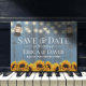 Rustikale Sonnenblume & Lanterns Dusty Blue Barn Save the Date Hochzeitsankündigungen.