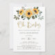 Diese rustikalen geschlechtsneutralen Babyduschen bieten hübsche Aquarellsonnenblumen in farbenfrohen Gelb- und Goldtönen, grüne Blätter auf einem schlichten, weißen Hintergrund mit Imitaten goldenen Schrift, die "oh baby" sagt.
