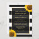 Rustikale Sonnenblume Schwarz-Weiß-Streifen Hochze Einladung