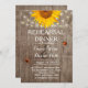 Rustikale Streichelleuchten & Sonnenblumen Ladybugs Barn Wood Hochzeit Probe Dinner Einladungen.