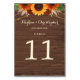 Rustikale Sonnenblume Terracotta Rose Boho Wedding Tischnummer