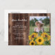 Rustikal dunkelbrauner Holzkofferraum Party/Studentendusche Postkarte mit bunten gelben Sonnenblumen und Platz für Ihr Foto. Kontaktieren Sie uns für Hilfe bei der Anpassung oder um passende Produkte anzufordern.