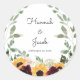 Rustikale Sonnenblume und Rose Hochzeit Runder Aufkleber
