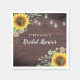 Die Servietten aus Brautparty sind mit rustikalen Sonnenblumen, Holz und Glaskeramikleuchten ausgestattet. Personalisieren Sie diese Servietten mit dem Namen der Braut. Diese Servietten sind Teil einer Kollektion, die eine Reihe passender Produkte enthält, die Sie individuell gestalten können. Bitte besuchen Sie unser Geschäft, um das komplette Sortiment zu sehen.
