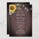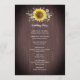 Die Hochzeitsfeiern sind mit Sonnenblumen, Holz und Glaskeramikleuchten ausgestattet. Die Vorderseite der Karte hat die Zeremonie, und auf der Rückseite der Karte wird das Brautparty angezeigt. Diese Hochzeitsprogramme sind Teil einer Sammlung, die eine komplette Palette von passenden Hochzeitswaren beinhaltet, die Sie für Ihre Hochzeit personalisieren können. Bitte besuchen Sie die Sammlungs-Seiten in unserem Geschäft, um das komplette Sortiment zu sehen.