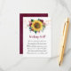 Diese Hochzeitskarten sind mit Aquarellsonnenblumen und bordeauxfarbenen Rose mit Saitenleuchten ausgestattet. Diese Karten sind Teil einer Sammlung, die die passende Hochzeitsware und Geschenke enthält. Schauen Sie sich die Sammlungs-Seite an oder besuchen Sie unseren Shop, um die komplette Produktpalette zu sehen, die Sie für Ihren Hochzeitstag individuell gestalten können.