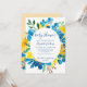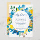 Eine rustikale, gelbe Sonnenblumen gemalt und blau blühende Aquarell Babydusche mit einer eleganten Schrift Schriftart Typografie.