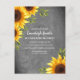 Rustikale Party Einladung im Landhausstil mit hellgelben Sonnenblumen auf einem Kalkboard-Hintergrund.