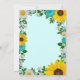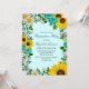 Rustikale Abschluss-Einladung mit lebendigen Sonnenblumen, traditionellen Weißtönen und aquamarinen Blume vor einem hellen Aquarell mit Babyatmen und botanischen Akzenten im Grünen