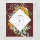 Herzlichen Glückwunsch! Für die Bearbeitung oder Anpassung Ihres speziellen Events nutzen Sie bitte die Seitenoptionen, um auf Zazzles *** KOSTENLOSEN LIVE DESIGNER SERVICE zuzugreifen. *** HINWEIS: Dieses Geschäft hat eine große Auswahl an preiswerten Artikeln, die extrem günstig sind; sie können jedoch nicht die Größe/Dicke haben oder alle Funktionen enthalten, die mit den Preisoptionen verbunden sind; daher lesen Sie bitte alle PRODUKTSPEZIFIKATIONEN SORGFÄLÄTZLICH. SIE KÖNNEN DIESES DESIGN AUF ANDERE PRODUKTTYPEN ÜBERTRAGEN, die Ihren Anforderungen für einen geringen Preisanstieg besser entsprechen. Dies gilt insbesondere für Flyer. *** In den meisten Punkten in diesem Abschnitt können Sie zusätzliche Informationen wie einen QR-Scancode, Ereignisdetails und typischerweise auf einem Gehäuse vorkommende Elemente wie UAWG, Details zum Veranstaltungsort/Empfang, Anweisungen, Geschenkregistrierung, Veranstaltungswebsite und Live-Streaming einschließen. Durch die Aufnahme dieser Elemente können Sie noch größere Einsparungen erzielen. *** Diese Hochzeitseinladung beinhaltet hübsche Aquarellblumen und grüne Eukalyptus-Blätter sowie andere Grünpflanzen und Blätter in einem hübschen Bouquet hinter einem modernen diamantförmigen Rahmen. Dieser moderne Veranstaltungsgegenstand kann nach Wunsch für Bachelorette, Verlobungsfeier, Brautparty, Hochzeitsempfang verwendet werden, einfach den Text entsprechend bearbeiten.
