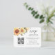 Moderne rustikale elegante Sonnenblumen und QR Code Hochzeit RSVP Karte. RSVP-Karte mit handgemalten Aquarellblumen und Grünpflanzen mit modernem Kalligrafieschrift und QR-Code. Sie können den Wortlaut, den Stil des Schriftartes, die Farbe und die Größe vor und hinter dieser botanischen RSVP-Karte personalisieren. Matching-Elemente verfügbar.
