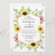 Feiern Sie Ihren großen Tag mit dieser eleganten, rustikalen Sonnenblumenhochzeit. Mit Aquarellblumen, Gänseblüten, Grünpflanzen und einem geometrischen Rahmen in Gold ist es perfekt für Herbst- oder Outdoor-Zeremonien. Der charmante Mix aus rustikaler und moderner Typografie verleiht Wärme und Stil. Ideal für Hochzeiten auf Land, Herbst oder Scheune. Passen Sie den Text an Ihren speziellen Tag an.