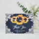 Rustikale Sonnenblumen-Hochzeit mit blauer Spitze Dankeskarte