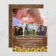 Erschwingliche rustikale Einladungen mit einem rustikalen Holzhintergrund, 4 Bildern des verlobten Ehepaares, hellgelben Sonnenblumen, Lichtern mit Saitenreihen und einer modernen Hochzeitsvorlage, die leicht zu personalisieren ist. BITTE BEACHTEN SIE: Es handelt sich um Papierblätter, die nicht mit Umschlägen versehen sind. Dieses Design kann jedoch auf Einladungskarten übertragen werden, die mit Umschlägen versehen sind.