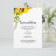 Diese rustikale, blumengeschmückte Hochzeitskarte bietet einen eleganten Sonnenblumenstrauß mit Grünpflanzen. Mit dieser Karte können Sie die Hotelinformationen für Ihre außerhalb der Stadt gelegenen Gäste hinzufügen.