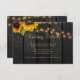 Rustikale, elegante Herbstunterkunft, Wegbeschreibung und weitere Infogehäuse mit Goldtypografie-Schrift auf dunkelbraunem Stallholz mit wunderschönen gelben Sonnenblumen und Lichtern aus der Hochzeit im Herbst. +++++++++++++++ Die Karte eignet sich für rustikale Hochzeitsfeiern auf dem Land.